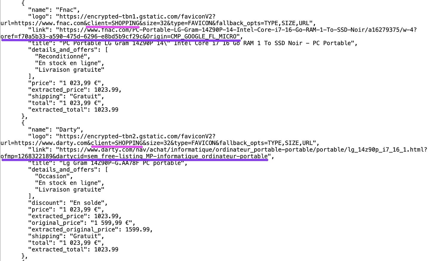 • SERPs display many structured product sheets : price, images, ratings, merchants.