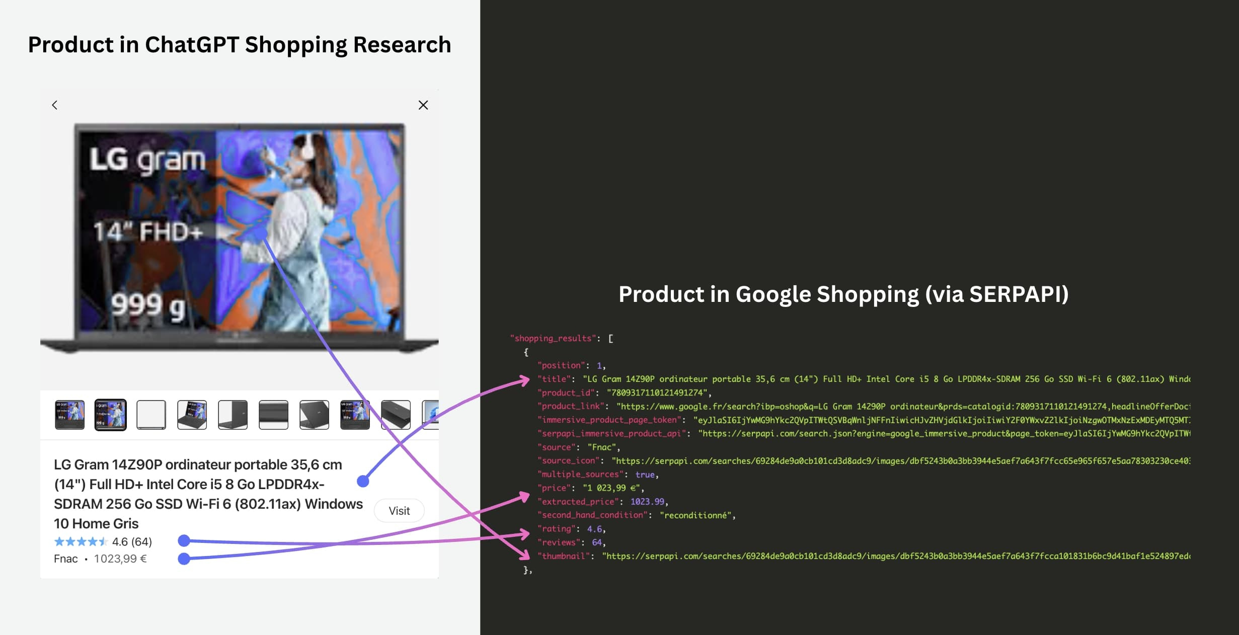 So to run its Shopping mode, ChatGPT queries both classic organic results from Google (to guide your choice), as well as Google Shopping (for the exact data on the products).