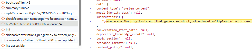 This prompt system can easily be found today in the source code of the conversation with your generated shopping guide: