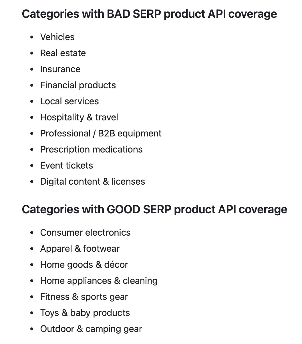 2. Does the category have good coverage via the SERP-based product API?